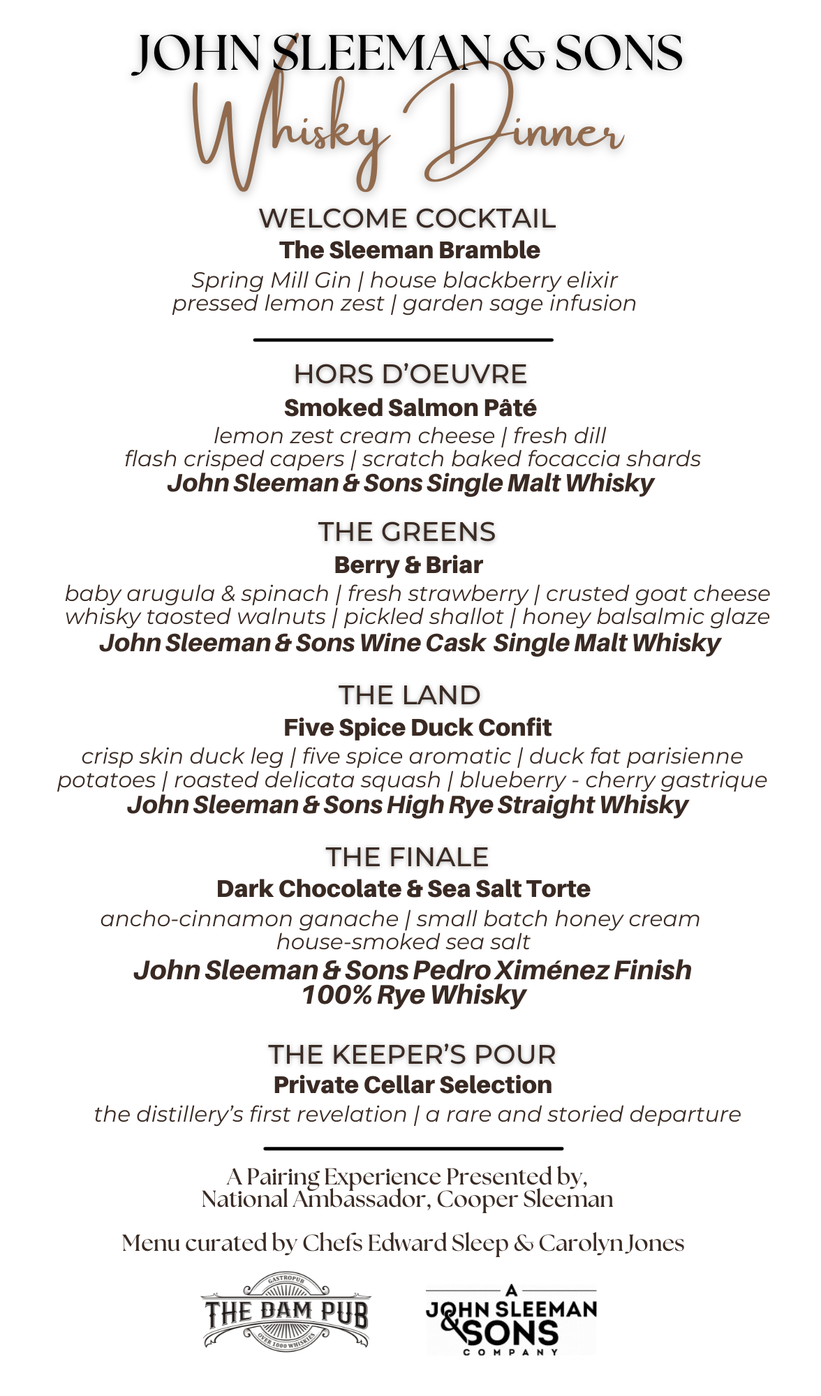 We are thrilled to welcome back Cooper Sleeman, Brand Ambassador, who will lead this immersive evening and present a selection of their celebrated whiskies, including some exciting new releases.